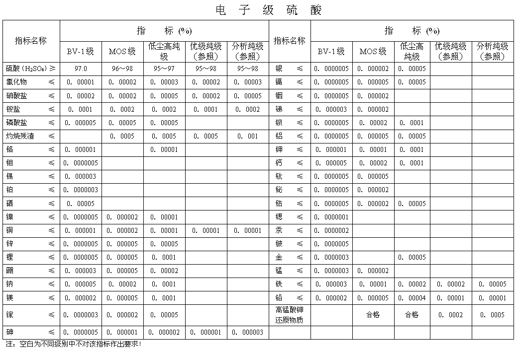Electronic grade sulfuric acid product standards
